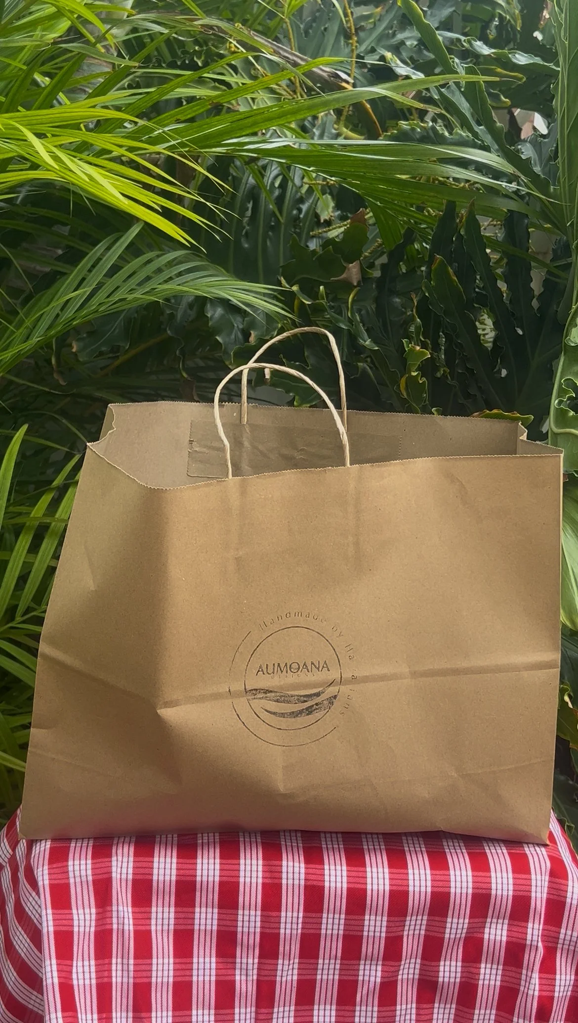Aumoana Fukubukuro Lucky surprise bag. Packed with assorted merchandise. Items could include apparel, accessories, or jewelry. Available in sizes small, large, and extra large. All sales final.