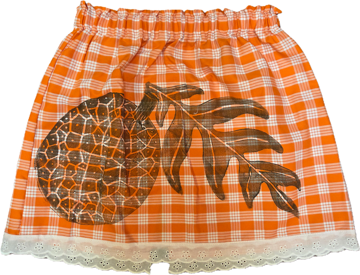 Wahine Uʻi Top is handmade using a Orange colored premium palaka fabric. The block printed Tiare flower is displayed across the front. The top is a size extra small - small and has an elastic top that measures at approximately 13 to 18” across the front. There is a peek a boo back for an added touch of sass and a detailed white eyelet lace trim along the bottom. Please double check measurements prior to bidding as all sales are final.