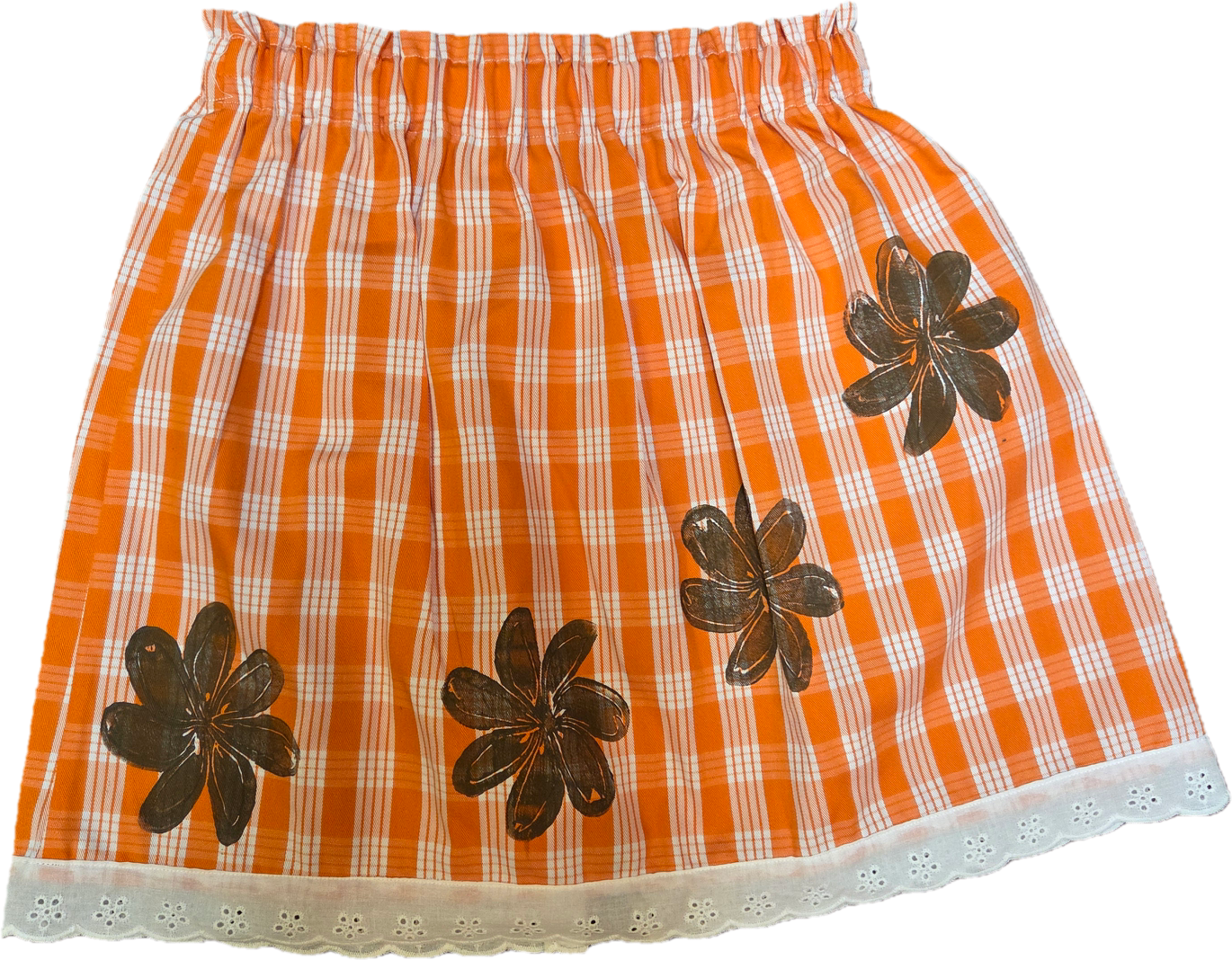 Wahine U'i Top Orange Palaka w/Tiare Block print