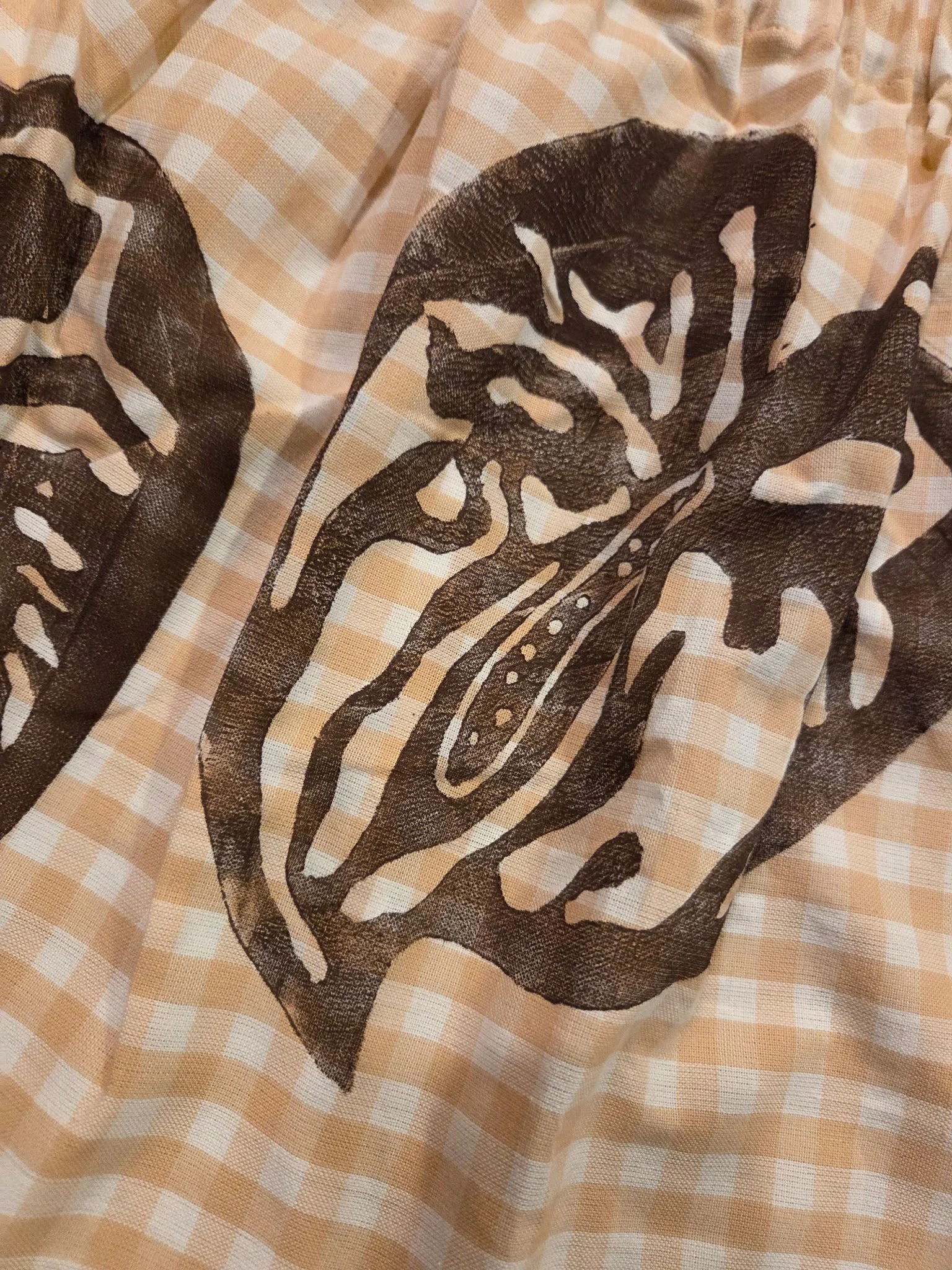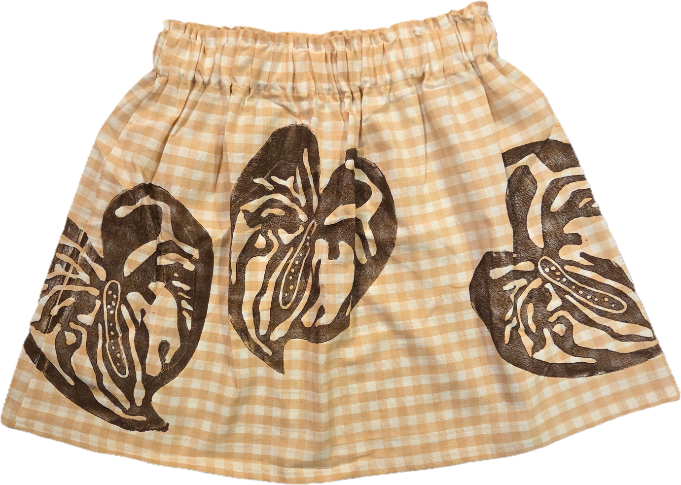 Wahine U’i Top in a blush pink and white gingham fabric with an Anthurium block print. The top is a size medium - large and measures at approximately 13- 21” across the front and 16 -17” in length. There is a peek a boo back for an added touch of sass and a white eyelet lace trim along the bottom hem.